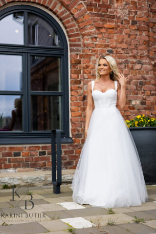 Окунитесь в атмосферу самого прекрасного дня с помощью нашего роскошного свадебного платья, призванного сделать ваш знаменательный день еще более особенным. Это потрясающее платье сочетает в себе воздушный тюлевый лиф и элегантный корсет, создавая уникальный и очаровательный образ.