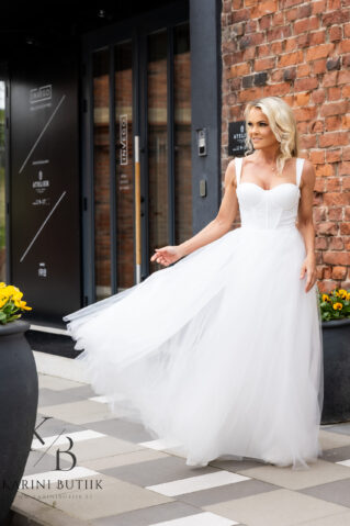 - Элегантный корсет: Корсет платья призван подчеркнуть вашу фигуру и создать красивый силуэт. Корсетные детали придают платью роскошь и элегантность и обеспечивают надежную и комфортную посадку в течение всего свадебного дня. Сзади корсет застегивается на ленту в стиле свадебного платья. На юбке также имеется застежка.