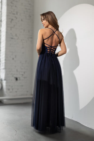 See luksuslik maksikleit on ideaalne valik erilisteks sündmusteks – olgu selleks pulmad, gala või pidulik õhtusöök. Kleidi siidise läikega ülaosa loob kauni drapeeringu, mis toob esile figuuri naiselikkuse, samas kui õhuline tüllseelik lisab liikumisse kergust ja graatsiat. Julge säärteosa lõhik lisab kleidile sensuaalsust ja peomeeleolu.