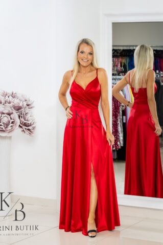 Satiinist Elegants: Kleidi satiinkangas toob esile luksusliku sära ja pehmuse, mis rõhutab teie naiselikkust ja stiili. See on valmistatud kvaliteetsest materjalist, mis tagab mugavuse ja vastupidavuse. Kleidi pikk seelik ja õrnalt kujundatud ülaosa loovad unikaalse ja elegantse silueti, mis sobib ideaalselt pidulikeks sündmusteks, nagu pulmad, ballid või pidulikud aktused.