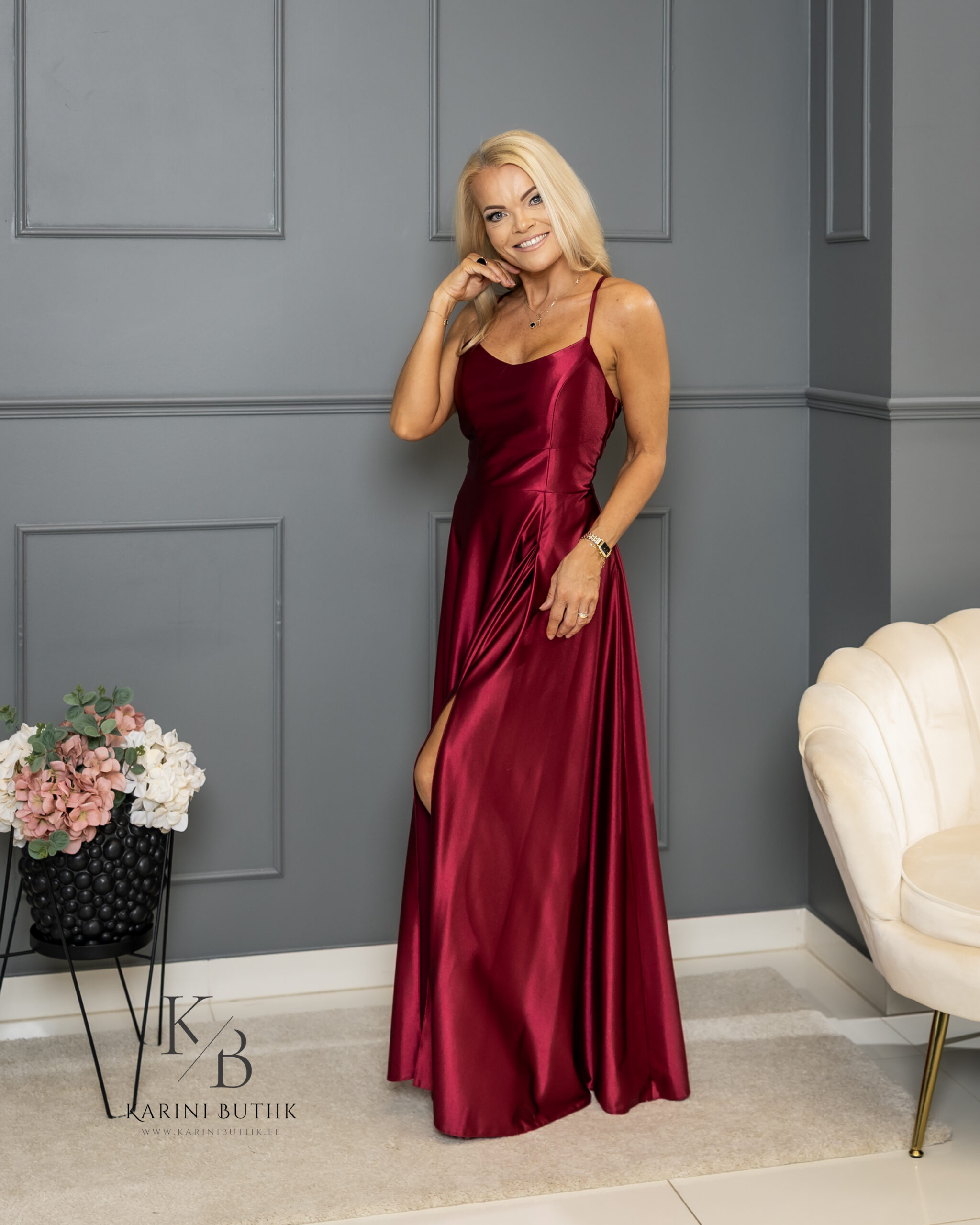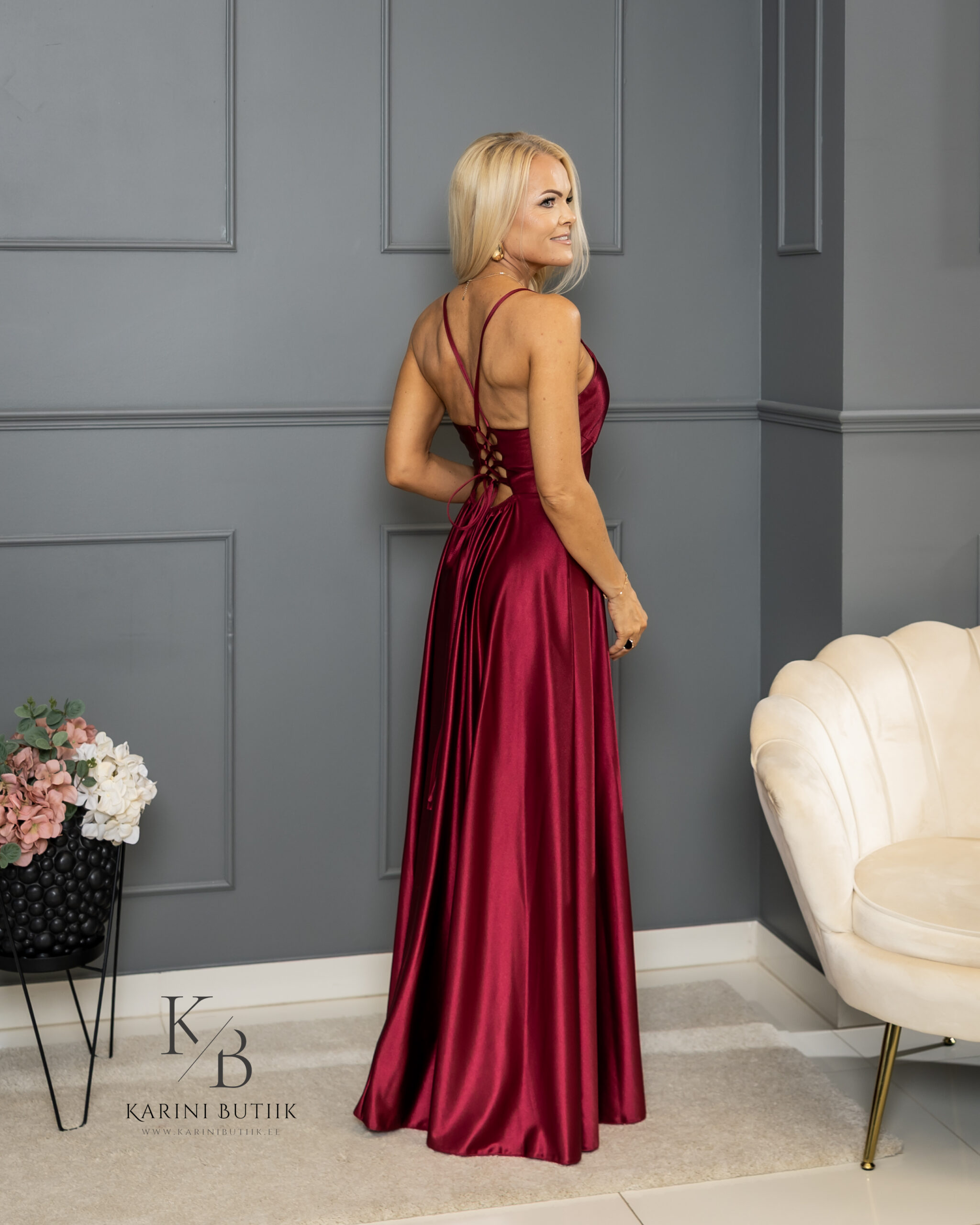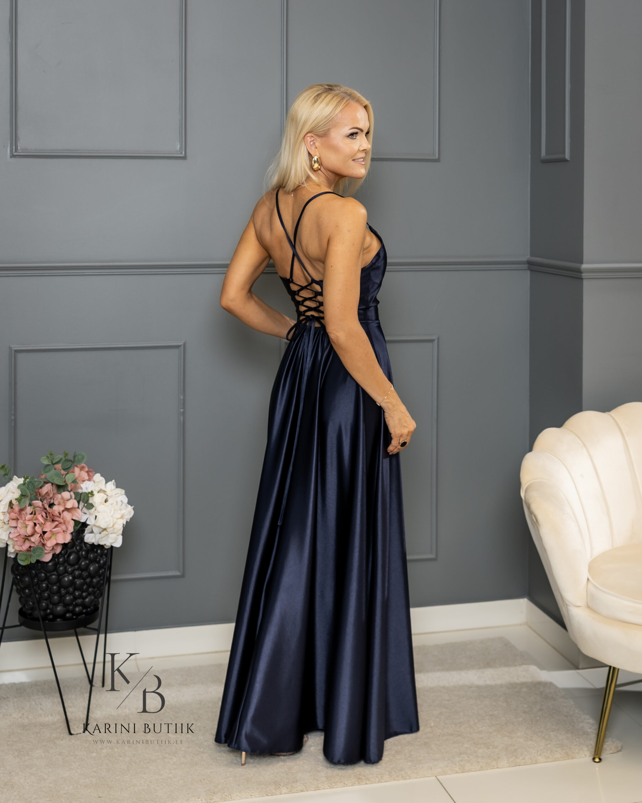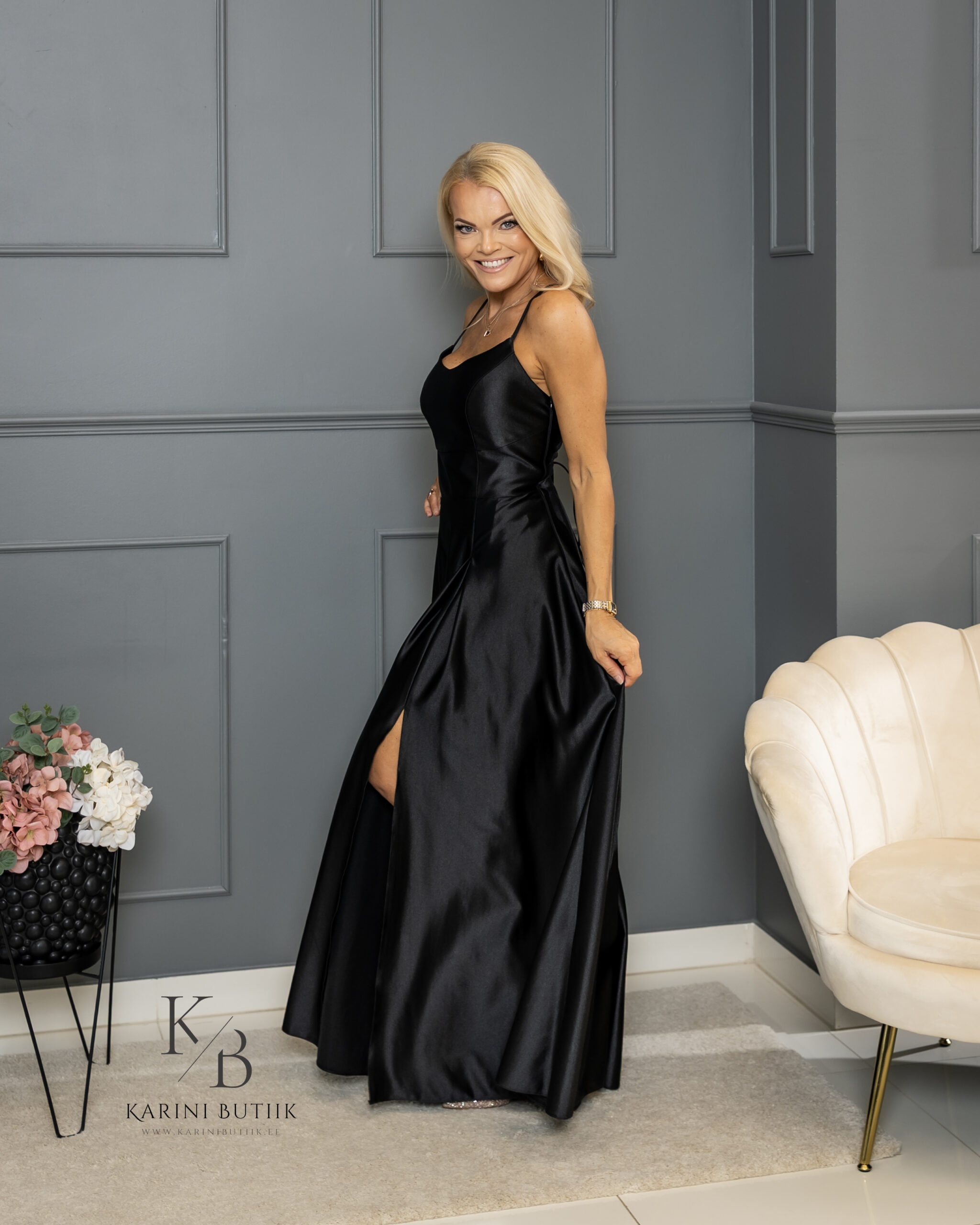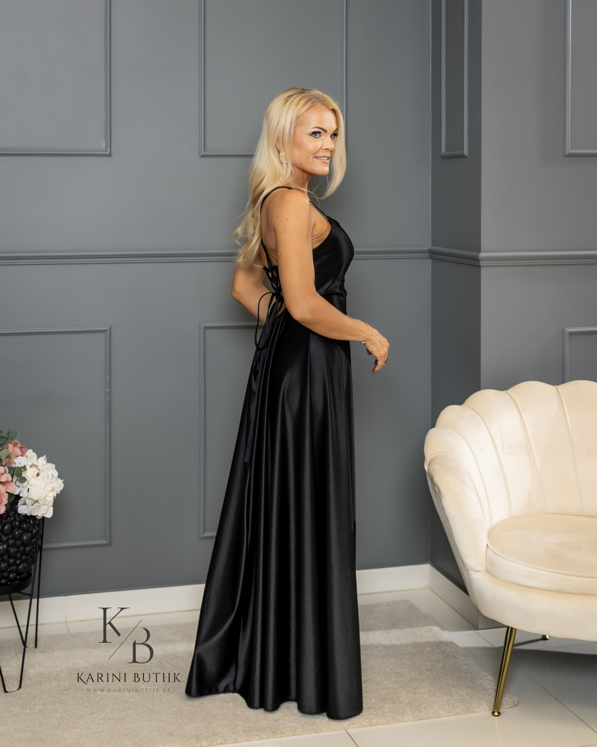 Silmapaistev ja naiselik maksikleit paksemast satiinkangast on loodud selleks, et tuua esile kandja enesekindlus ja elegants. Kleidi julge lõhik lisab sensuaalsust, samas kui seljaosal olevad korsetilõikelised reguleeritavad paelad tagavad kauni ja istuva silueti.