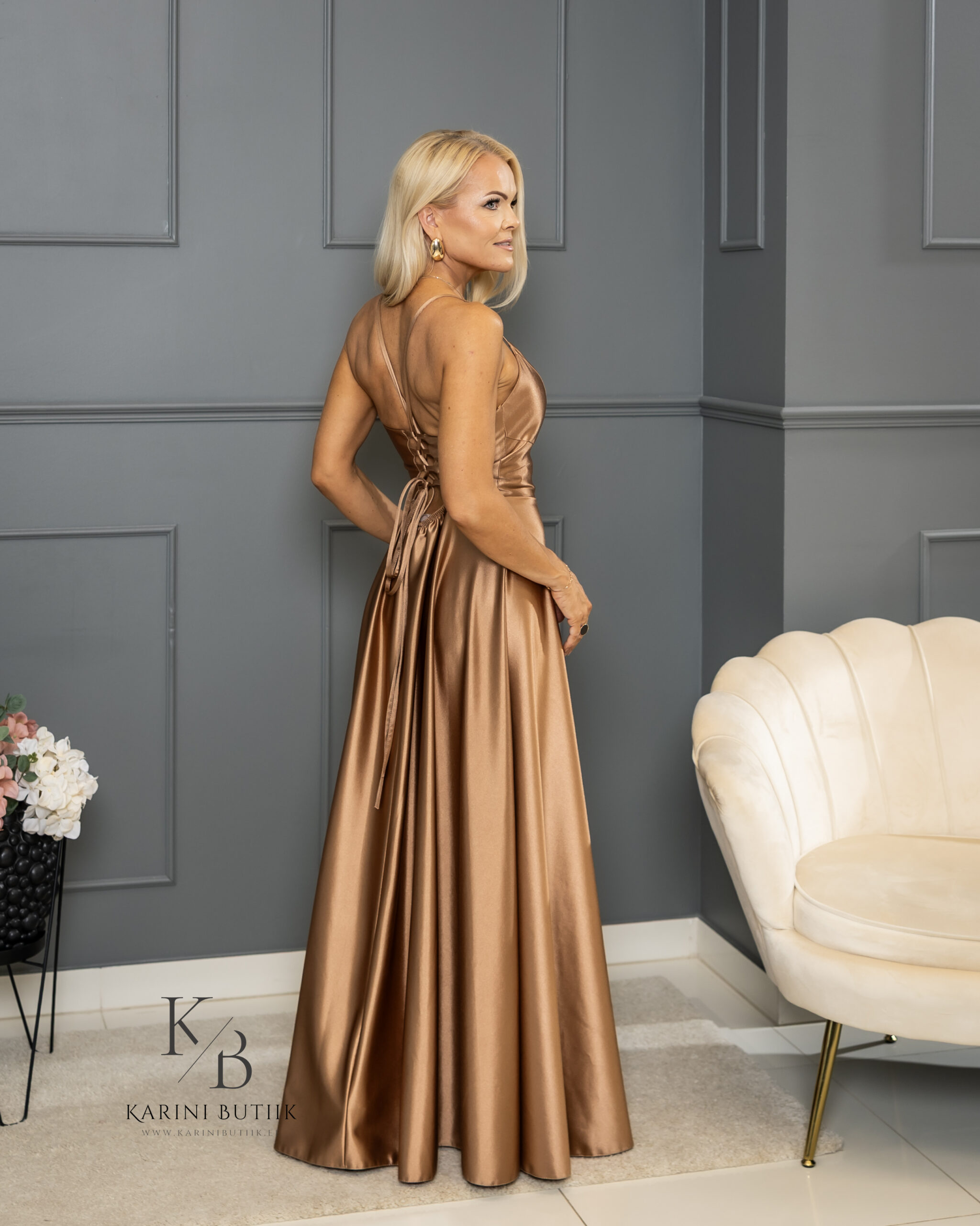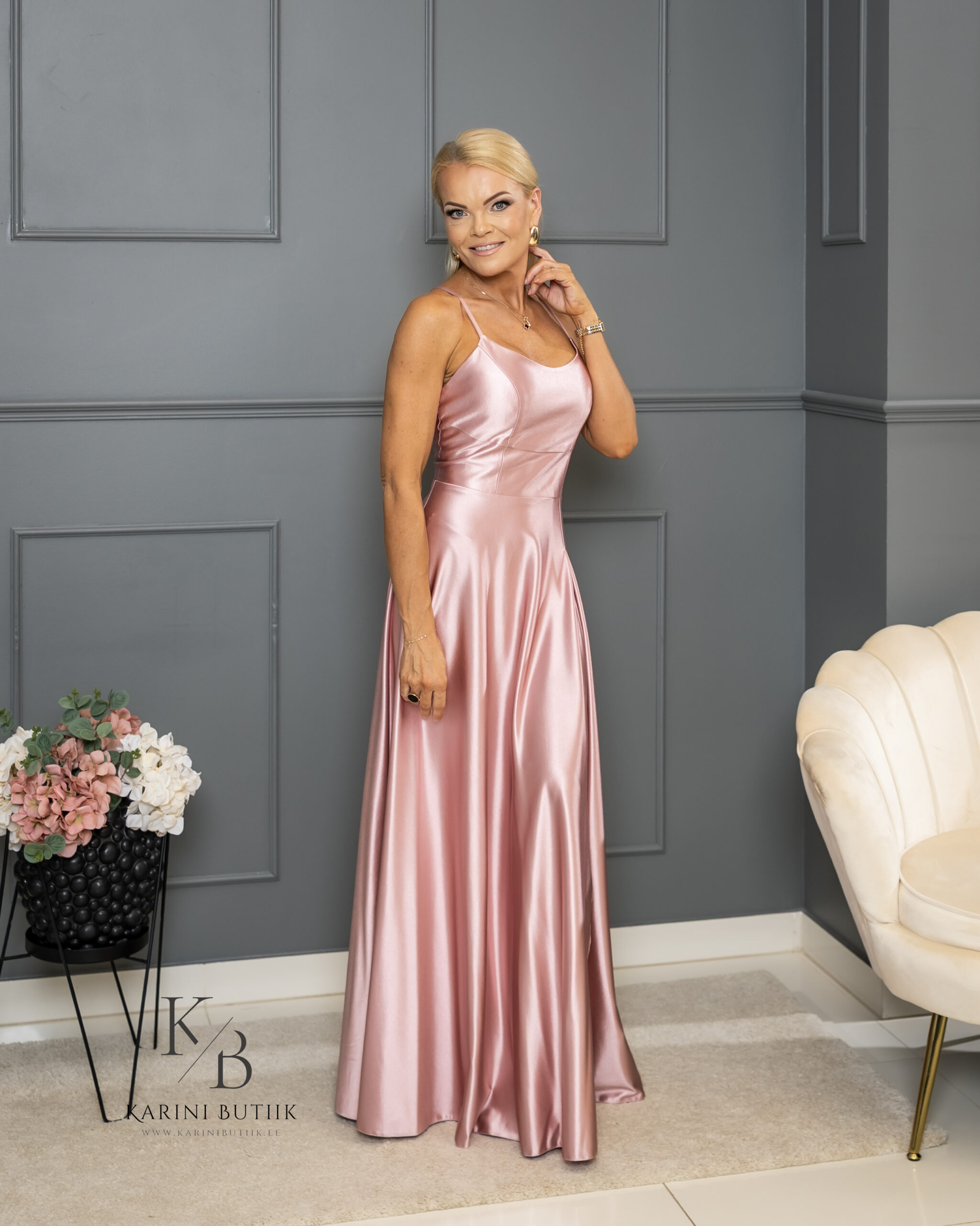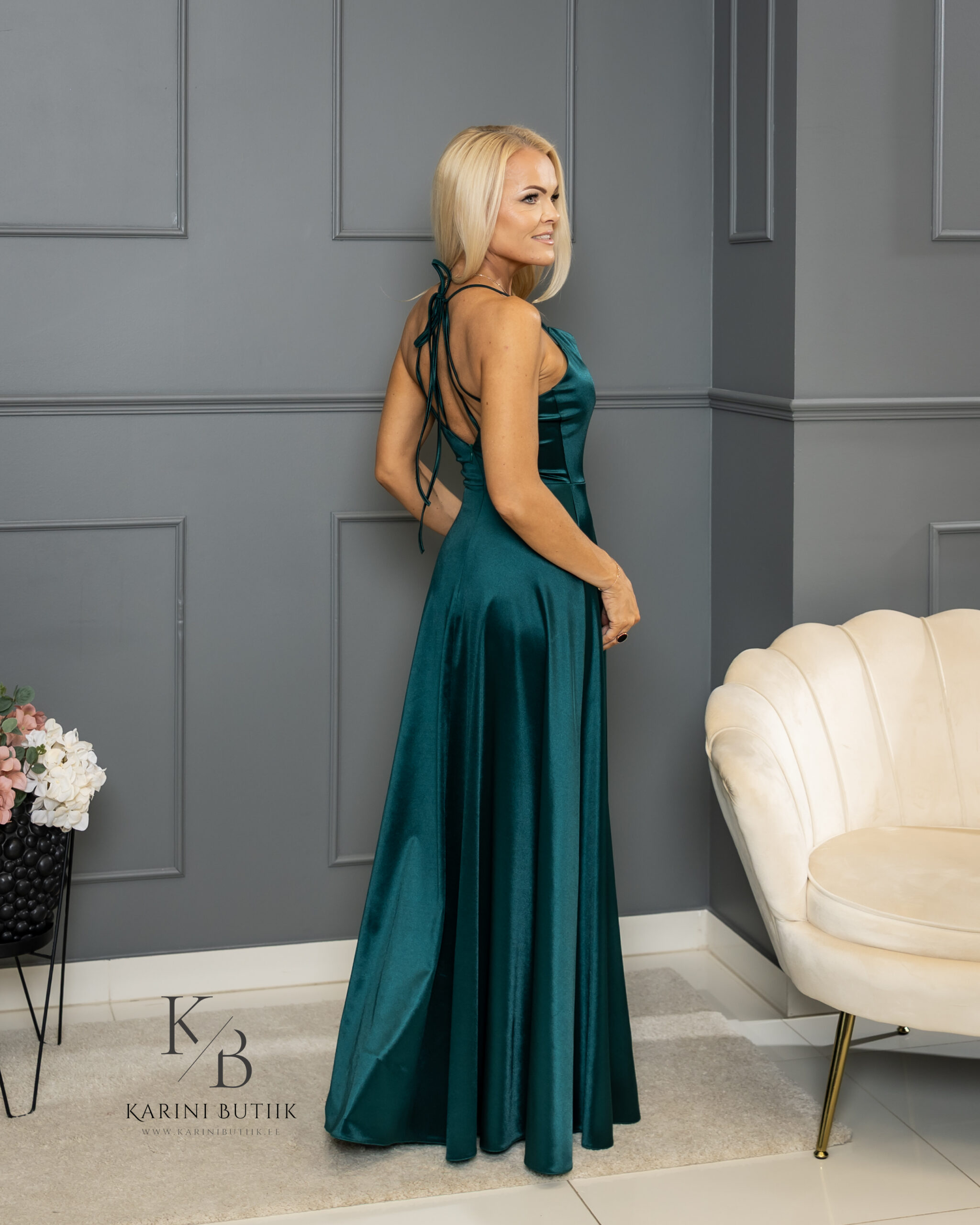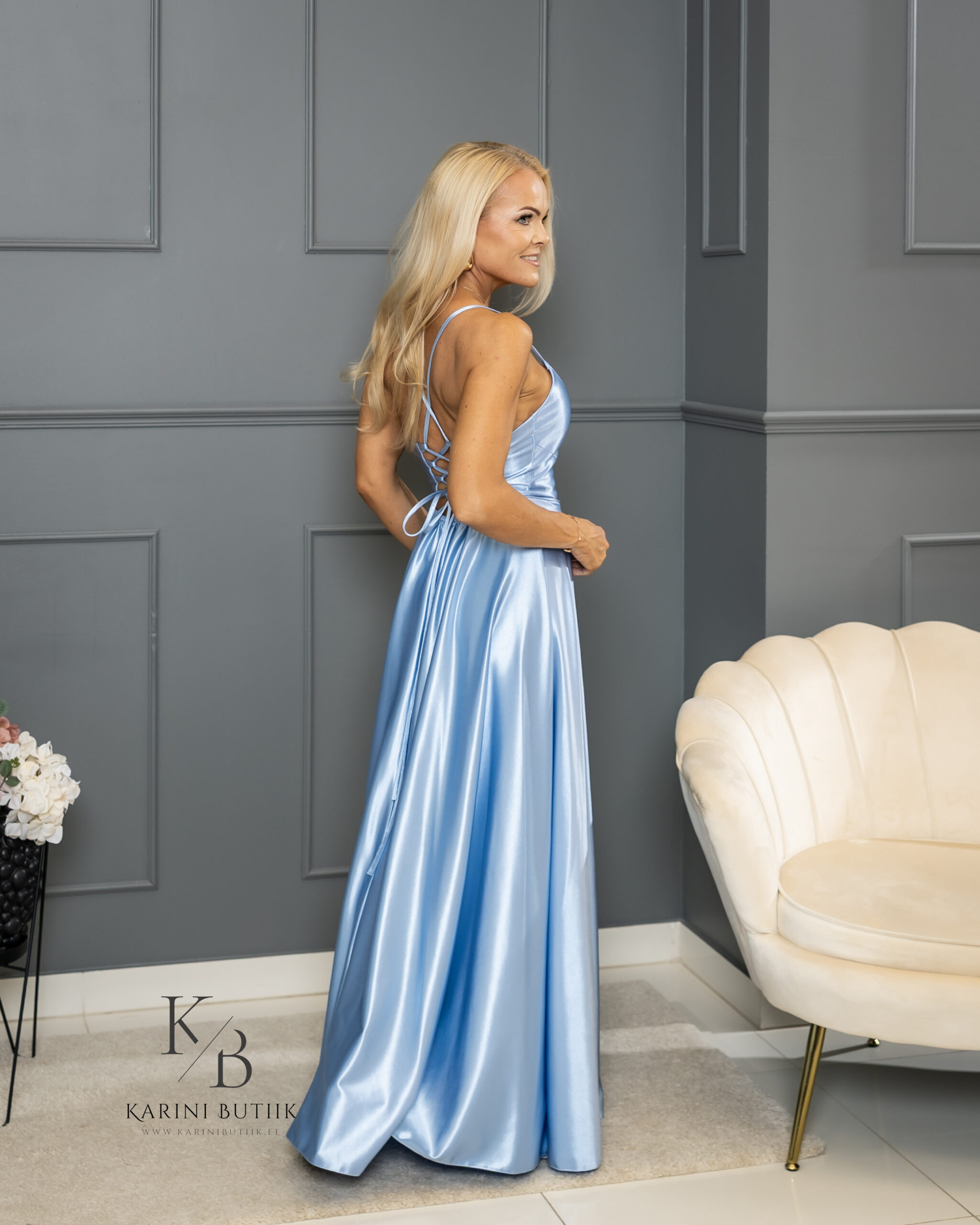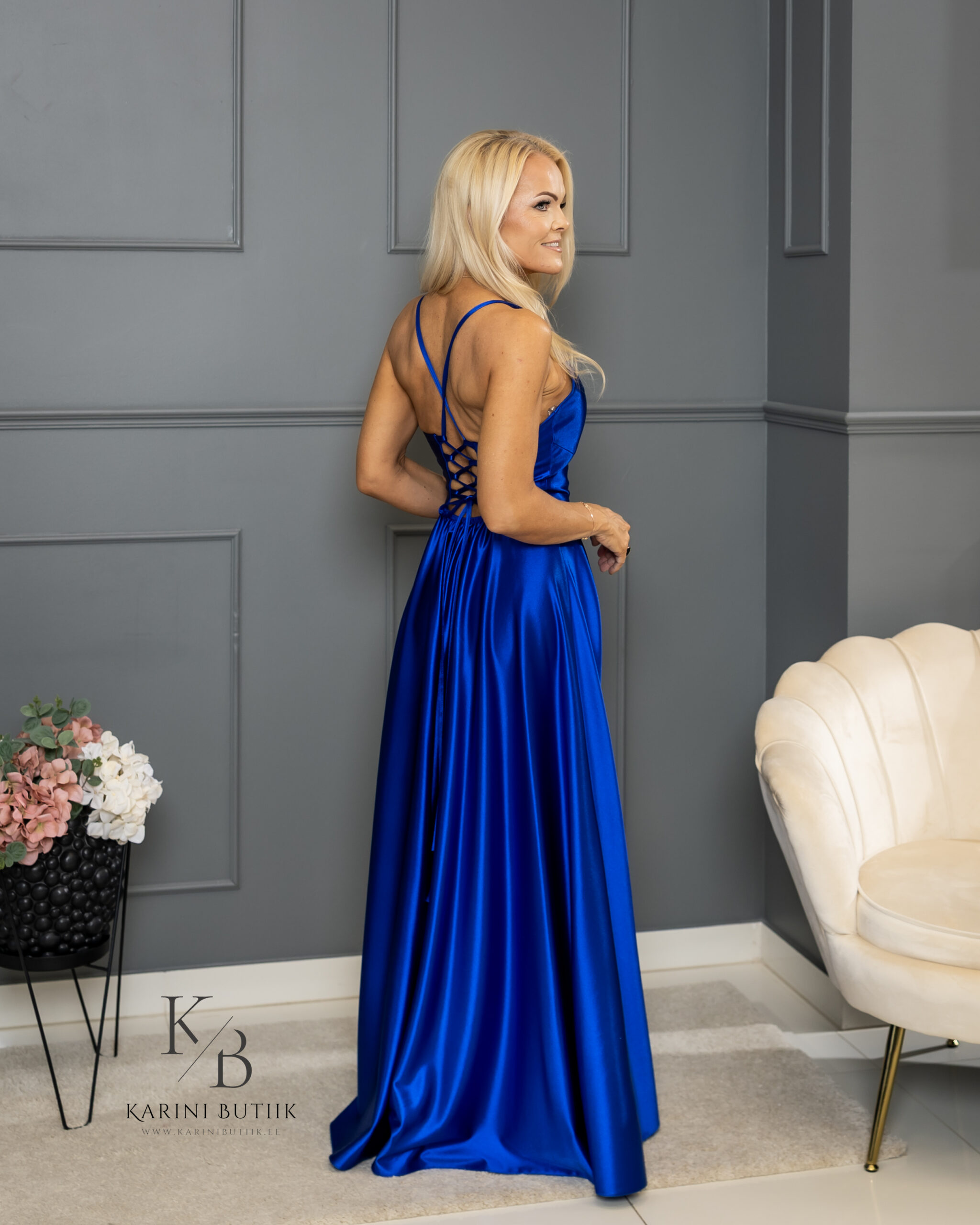 Silmapaistev ja naiselik maksikleit paksemast satiinkangast on loodud selleks, et tuua esile kandja enesekindlus ja elegants. Kleidi julge lõhik lisab sensuaalsust, samas kui seljaosal olevad korsetilõikelised reguleeritavad paelad tagavad kauni ja istuva silueti.