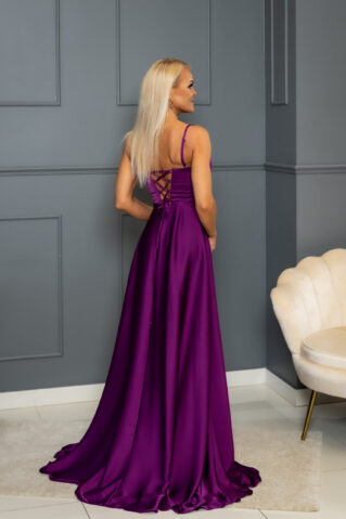 Korsettlõikeline pidulik lilla maksikleit on ideaalne valik erilisteks sündmusteks, olgu selleks lõpupidu, pruutneitsi kleit või muu pidulik hetk. Kleidil on reguleeritavad ja eemaldatavad õlapaelad, mis võimaldavad kanda kleiti mitmel viisil. Seljal lukk ja paelad tagavad täiusliku istuvuse ja mugavuse.
