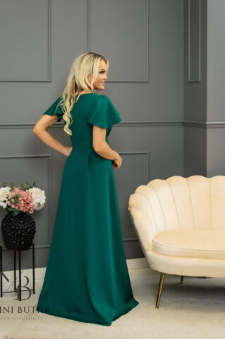 Add this beautiful flounced sleeve liver dress with slit to your wardrobe and enjoy compliments every step of the way!