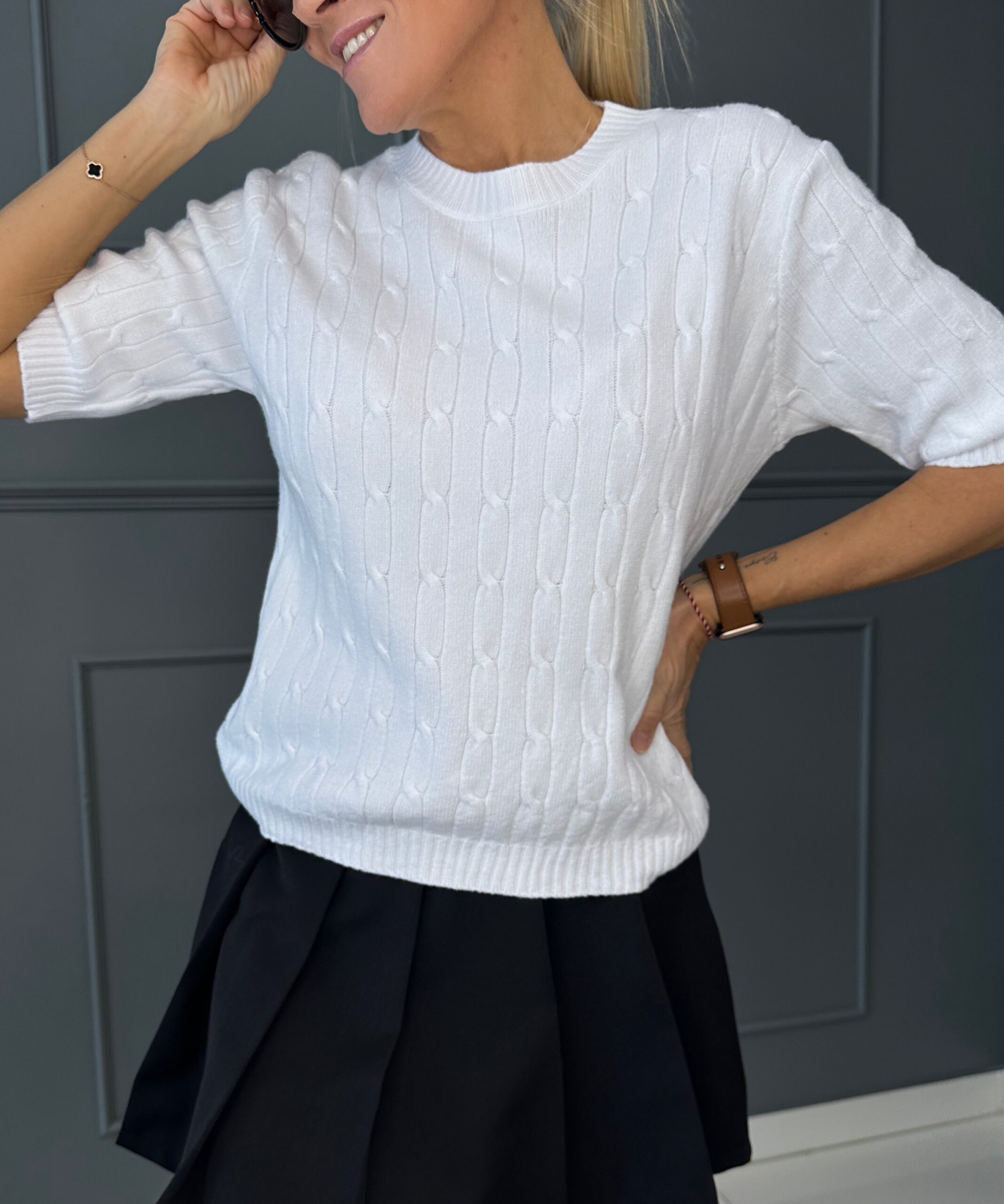 Universaalne üks suurus sobib XS–M kandjale, kohandudes tänu kudumi elastsusele erinevate kehatüüpidega. Ajatu, minimalistlik ja naiselik valik igasse garderoobi.
