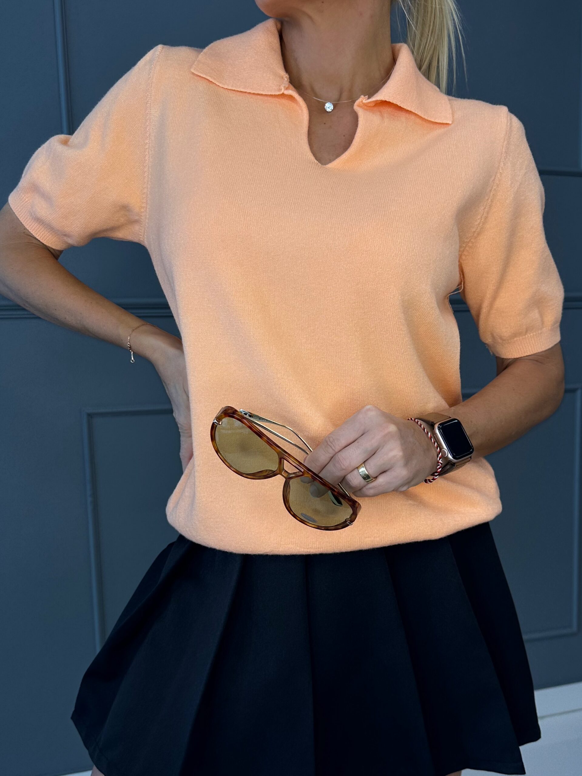 Pluus on saadaval kolmes trendikas toonis – pastellkollane, oranž ja virsik –, mis lisavad garderoobile värskust ja naiselikku sära. Universaalne üks suurus sobib XS–M kandjale, kohandudes tänu kudumi elastsusele erinevate kehatüüpidega.