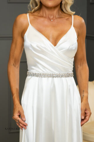 This charming, beautiful shiny bridal sash is the perfect addition to your wedding dress.