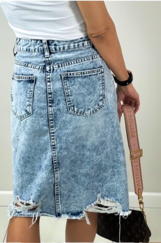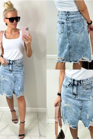 Trendikas ja ajatu kulutatud teksaseelik helesinises toonis on ideaalne täiendus igale garderoobile. Seelik on valmistatud kvaliteetsest teksakangast, mis on kergelt kulutatud, andes sellele modernse ja lõdvestunud ilme. Klassikaline helesinine toon muudab selle mitmekülgseks, sobides suurepäraselt nii igapäevaseks kandmiseks kui ka stiilsemateks koosviibimisteks. Kombineeri see seelik oma lemmik t-särgi, pluusi või kampsuniga, et luua värske ja moekas välimus, mis on alati trendikas.