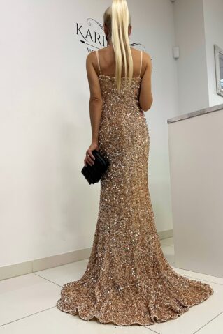 - Glamūrīgs litterdesign: Kleita ir rotāta ar mirdzošiem fliteriem, kas piešķir greznu un krāšņu mirdzumu.