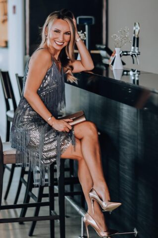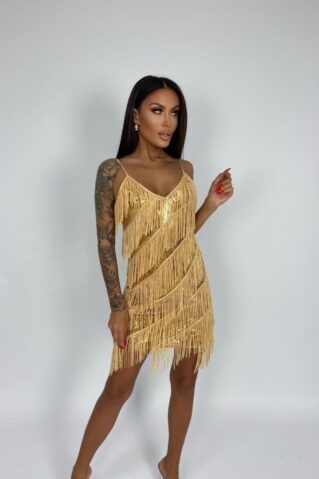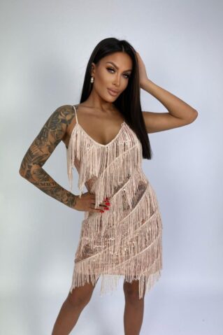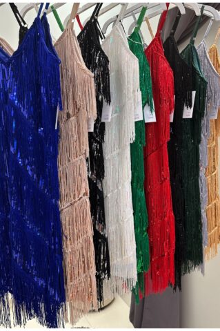 Klientide vaieldamatu lemmik! See mini pikkuses Gatsby stiilis litterkleit on tõeline pilgupüüdja, mis kiirgab glamuuri ja sära. Litterdetailid ja stiilsed narmad lisavad kleidile dünaamilisust ja liikumist, tehes sellest ideaalse valiku pidulikeks sündmusteks ja ööelu nautimiseks. Kleidiga oled alati tähelepanu keskpunktis ja särad nagu tõeline staar.