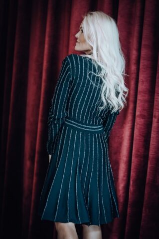 Элегантное трикотажное платье с длинными рукавами, которое добавит блеска в гардероб любой женщины. Платье с легким мерцанием и расклешенной юбкой создает женственный и струящийся силуэт. Идеально подходит как для торжественных случаев, так и для повседневной носки, подчеркивая естественную красоту своей обладательницы.