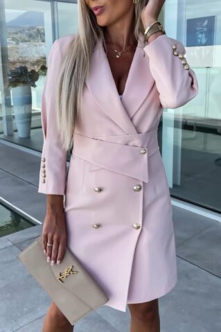 Стильное платье-блейзер с поясом. Застегивается спереди на пояс и пуговицы, общая длина 89 см.