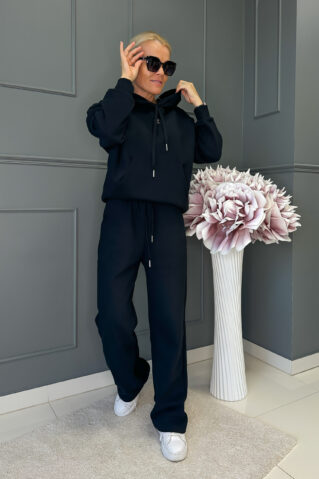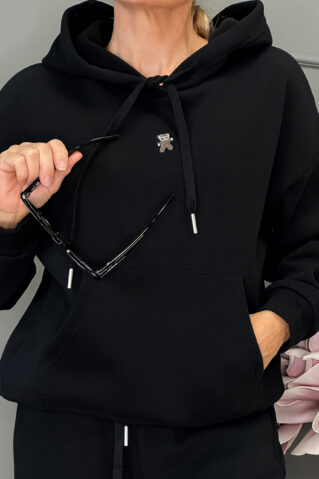Stiilne ja mugav dressikomplekt, mis koosneb sirge lõikega pükstest ja kapuutsiga dressipluusist. Dressipluusi rinda kaunistab efektne kivikestega kaetud minimalistlik mõmmikujundus, mis lisab komplektile ainulaadse ja pilkupüüdva detaili. Kängurutasku ja kapuuts teevad dressipluusi praktiliseks ja mugavaks valikuks igapäevaseks kandmiseks. Ideaalne komplekt neile, kes hindavad mugavust ja stiili üheskoos.