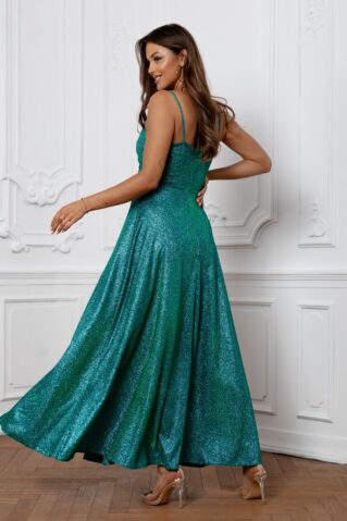 Sädelusega maksikleit, mille disainis kohtuvad elegants ja julge stiil. Kleit on varustatud peente õlapaeltega, taljet rõhutava lõikega ning efektse lõhikuga, mis lisab pidulikkust ja isikupära. Ideaalne valik erilisteks sündmusteks!