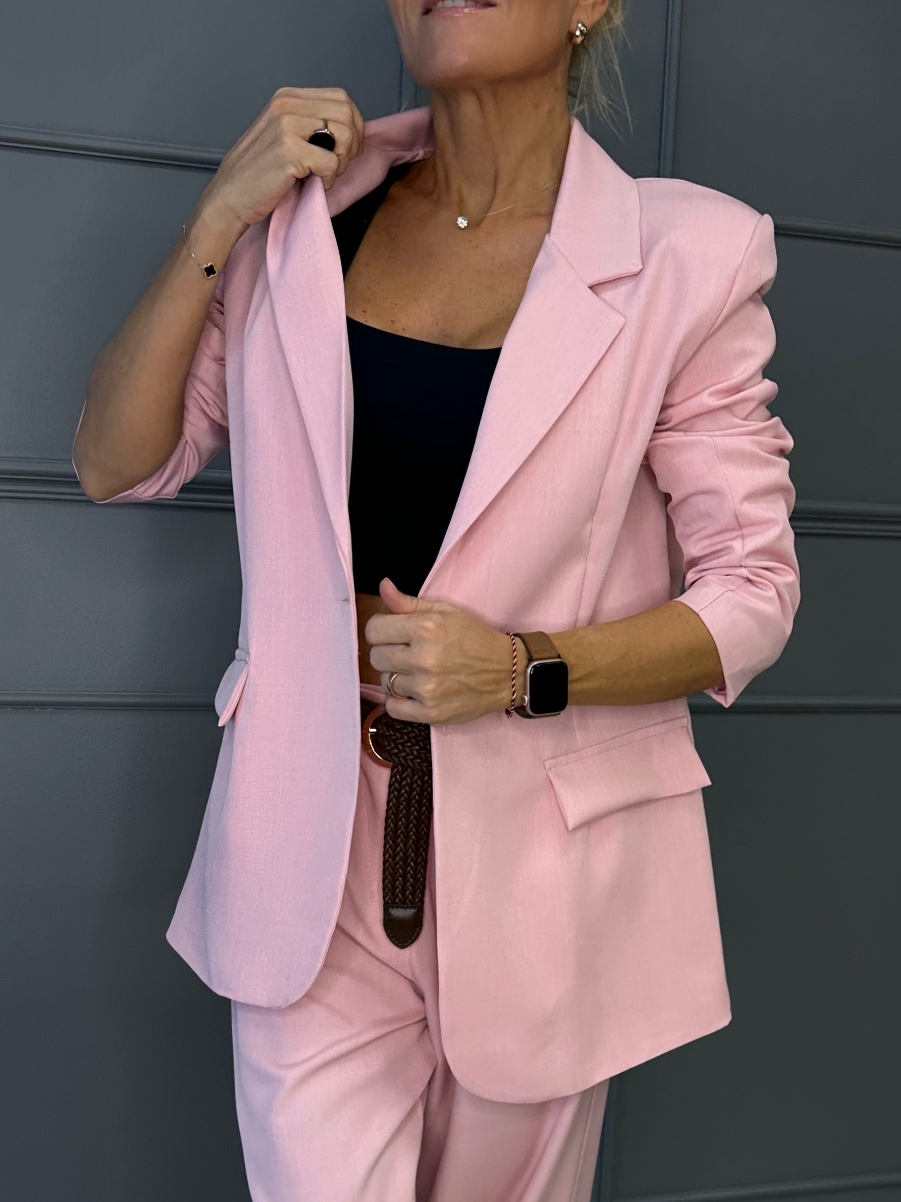 See pintsaku ja pükste komplekt naistele on ideaalne valik, kui soovid saavutada viimistletud ja enesekindla välimuse. Ajatu lõige ning puhas siluett muudavad komplekti sobivaks nii kontorisse, ärikohtumistele kui ka pidulikumatele sündmustele.