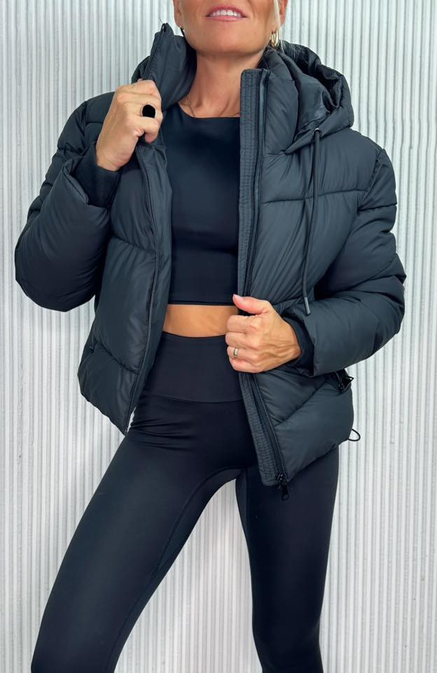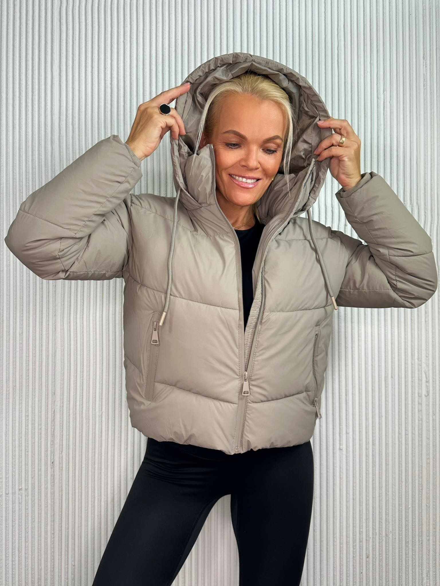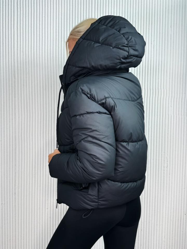 Lühike vatiintäidisega kapuutsiga jopeLühike vatiintäidisega kapuutsiga jope