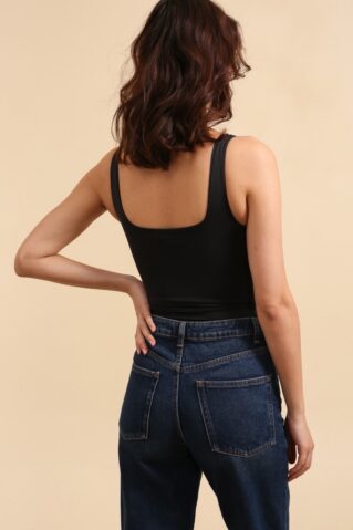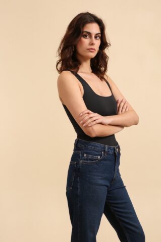 Klassikaline maika-stiilis bodi, mis ühendab lihtsuse ja mugavuse. Ilma läbiva õmbluseta disain tagab ühtlase ja sujuva silueti, muutes selle ideaalseks igapäevaseks kandmiseks või riietuse aluskihiks. Valmistatud venivast ja pehmest kangast, mis istub kehale nagu valatult. Saadaval mustas ja valges toonis ning suurustes S, M, L ja XL.