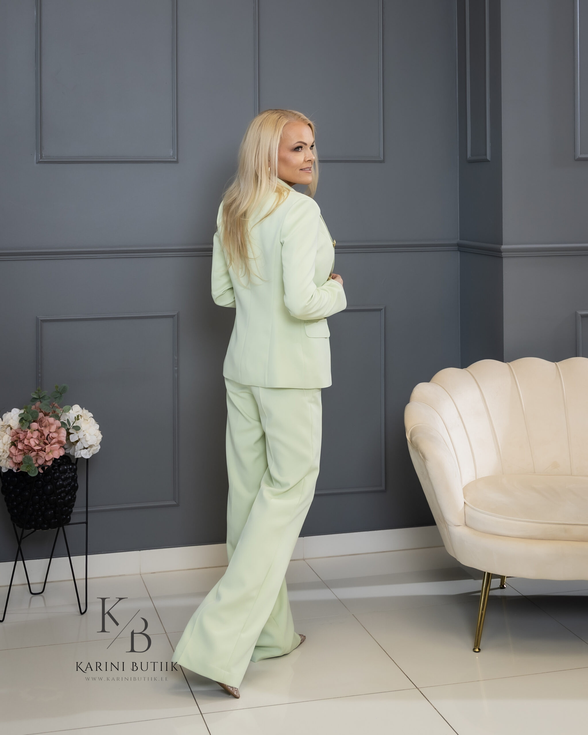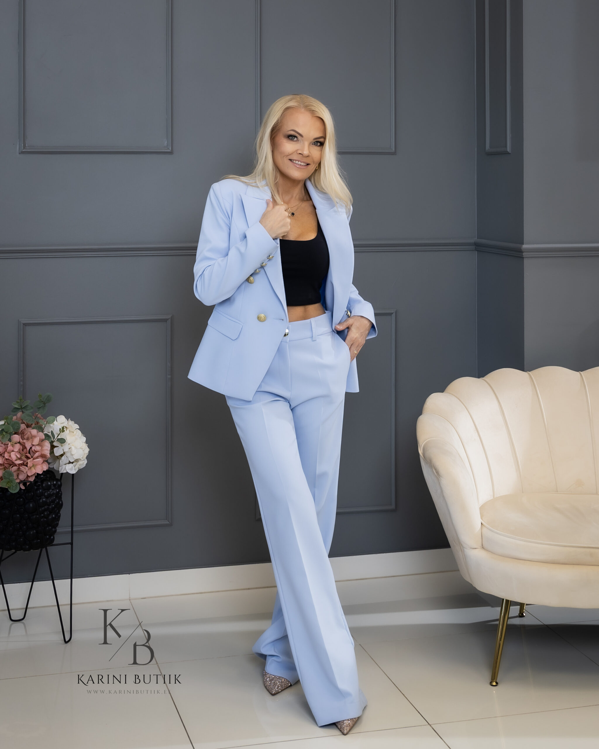 Karini Butiigi klassikaline taljes pintsak on elegantne ja ajatu valik naisele, kes hindab kvaliteeti, head istuvust ja naiselikku lõiget. Tegemist on taljes mudeliga, mis rõhutab kaunilt figuuri ning loob väljapeetud ja stiilse üldmulje.