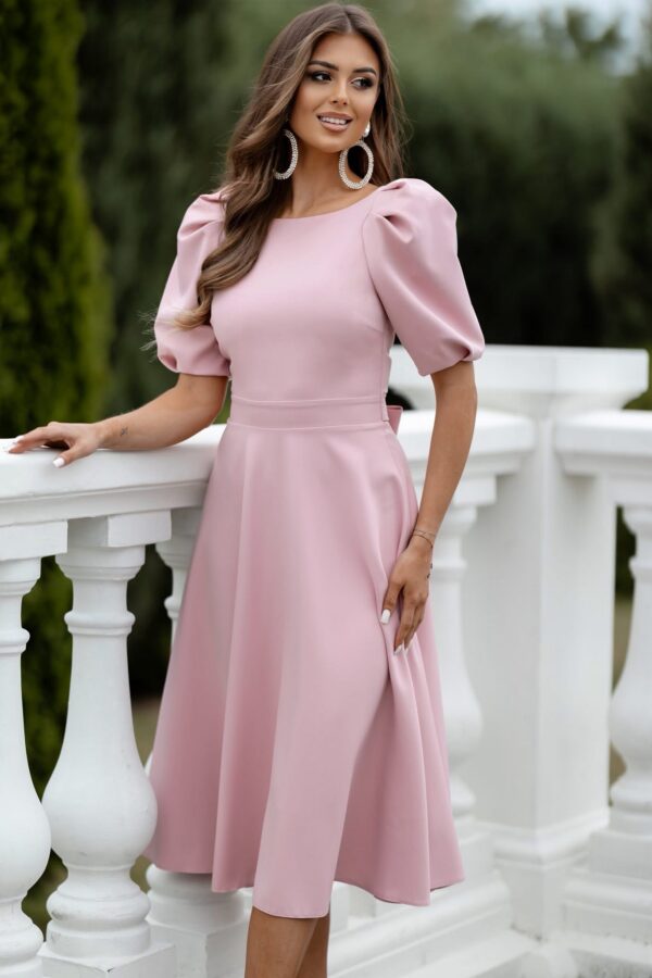 Kolmveerand varrukatega midikleit, seljalt seotav vööga ja kinnitub lukuga.