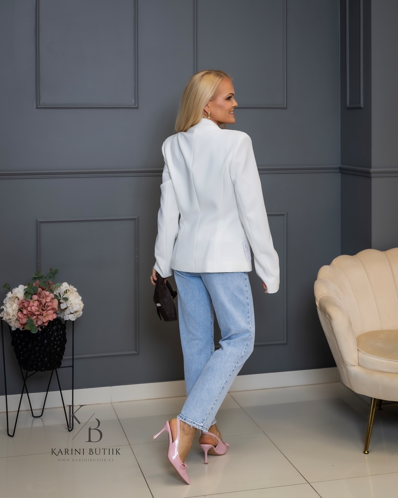 See stiilne pintsak sobib suurepäraselt nii pidulikumaks sündmuseks, kontorisse kui ka igapäevaseks šikiks kandmiseks. Lihtne sobitada teksade, viigipükste, seeliku või kleidiga. Valge ja helebeež toon annavad outfit’ile värske, helge ja väljapeetud ilme.
