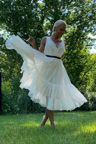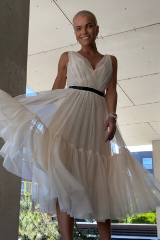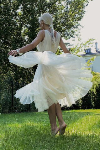 Romantilise ja luksusliku välimusega rohkete seelikuosadega tüllkleit