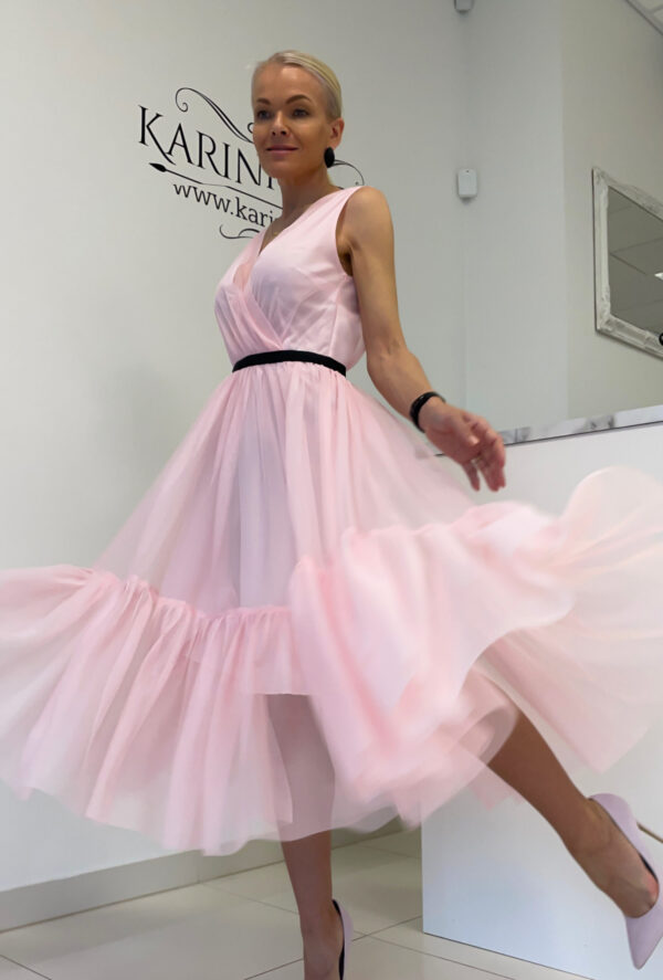 Romantilise ja luksusliku välimusega rohkete seelikuosadega tüllkleit
