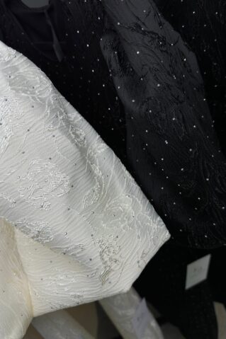 Kaunis ja elegantne mini-pikkuses kleit, mis paistab silma lühikeste puhvvarrukate ning peenete tikandite ja pisikeste kivikestega kaunistatud detailidega. See naiselik ja pilkupüüdev kleit kinnitub mugavalt küljelt peitluku abil, luues täiusliku silueti. Ideaalne valik nii pidulikeks sündmusteks kui ka erilisteks õhtuteks, pakkudes stiili ja mugavust üheskoos.