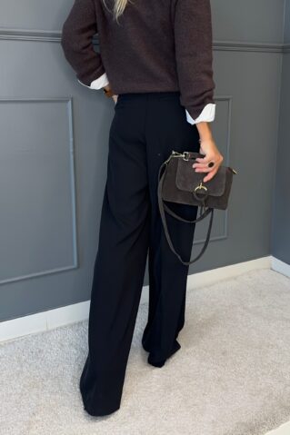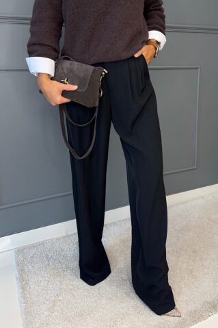 Stiilsed ja praktilised mustad tekstiilpüksid, mis langevad kaunilt ja loovad elegantse, pikendava silueti. Püksid on valmistatud mittekortsuvast ja väga mugavast materjalist, mis sobib nii igapäevaseks kandmiseks kui ka smart casual outfit’iks. Mudelil on mugavad küljetaskud ning täiuslik istuvus tänu pehmele, langevale kangale.