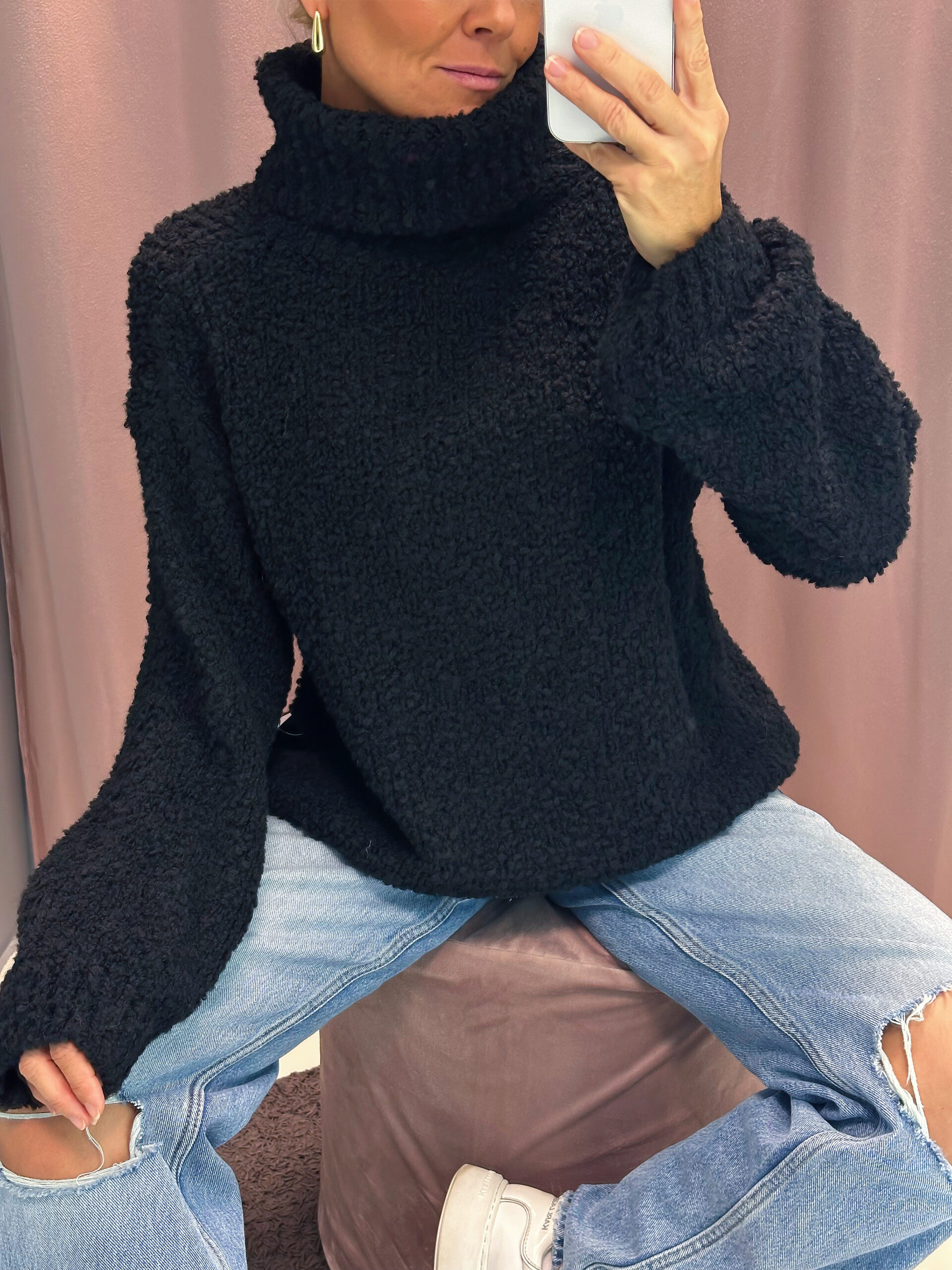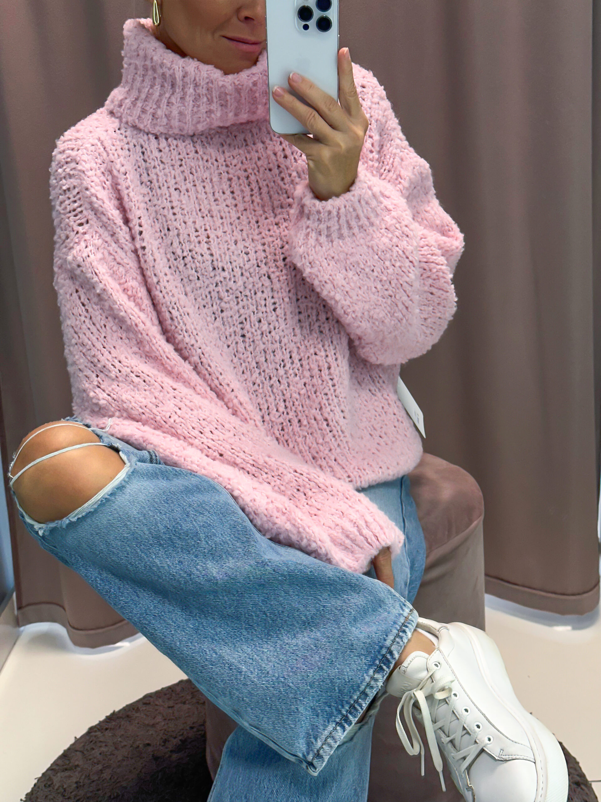 Ülimalt pehme ja mugav oversize kampsun, mida kaunistab lai kõrge keeratav krae. Kampsunil on vaba lõige, mis sobib ideaalselt nii igapäevaseks kandmiseks kui ka stiilseks kihiliseks outfitiks. Klassikaline ja naiselik mudel, mis lisab igale välimusele soojust ja elegantsi. Sobib kandmiseks nii teksade kui ka seelikuga – tõeline must-have sügis- ja talvehooajaks.