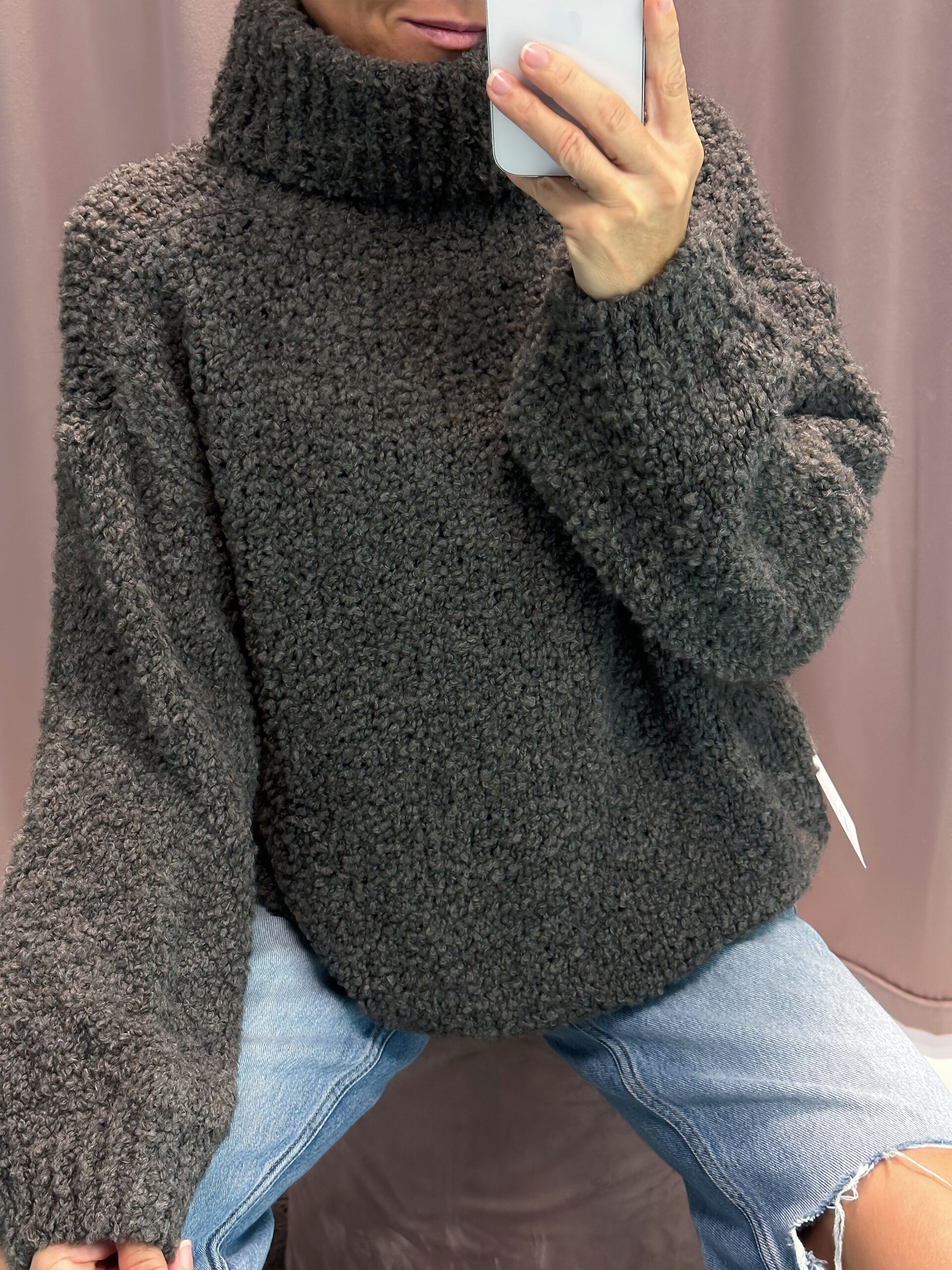 Pehme oversize kampsun laia kõrge keeratava kraega
