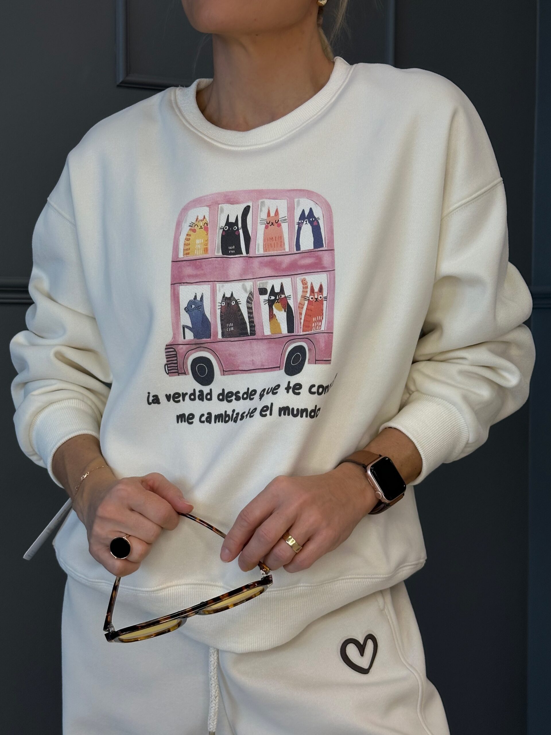Pluusi esiküljel olev hispaaniakeelne tekst „Y la verdad desde que te conocí me cambiaste el mundo“ tähendab eesti keeles „Ja tõtt-öelda sellest hetkest, kui ma sind kohtasin, muutsid sa mu maailma“, lisades pusale romantilise ja erilise sõnumi.