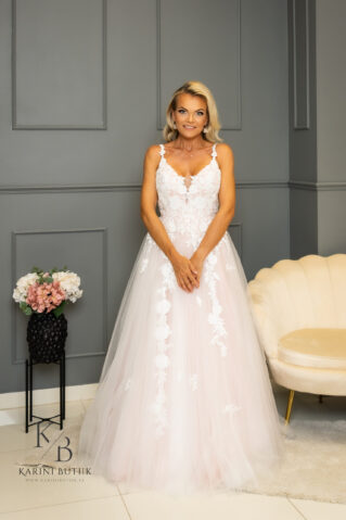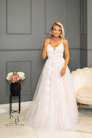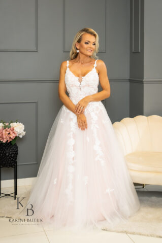 Olgu tegemist romantilise õhtuse tseremoonia või suursuguse päevase pulmapeoga, see valge tüllist ja õrnroosa aluskangaga pulmakleit on ideaalne valik igale pruudile, kes soovib oma erilisel päeval särada. Luba sellel kleidil olla osa sinu armastusloost ja loo mälestusi, mis jäävad eluks ajaks meelde!
