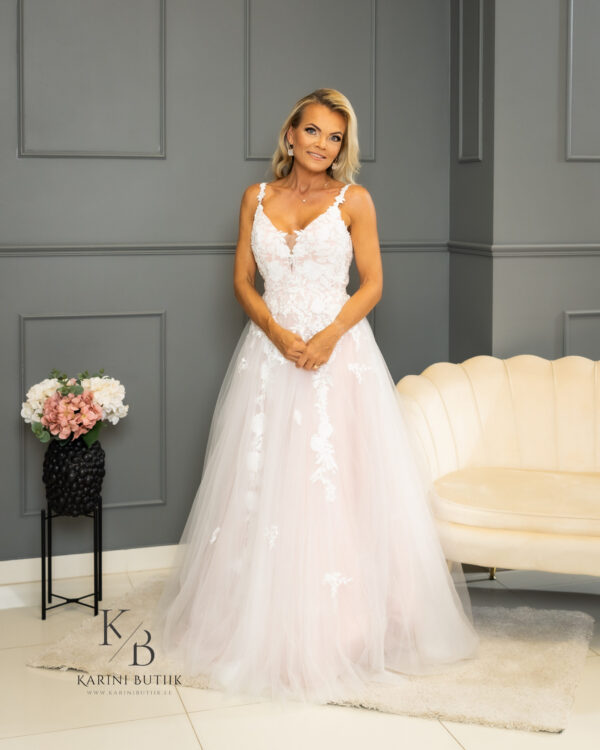 Olgu tegemist romantilise õhtuse tseremoonia või suursuguse päevase pulmapeoga, see valge tüllist ja õrnroosa aluskangaga pulmakleit on ideaalne valik igale pruudile, kes soovib oma erilisel päeval särada. Luba sellel kleidil olla osa sinu armastusloost ja loo mälestusi, mis jäävad eluks ajaks meelde!