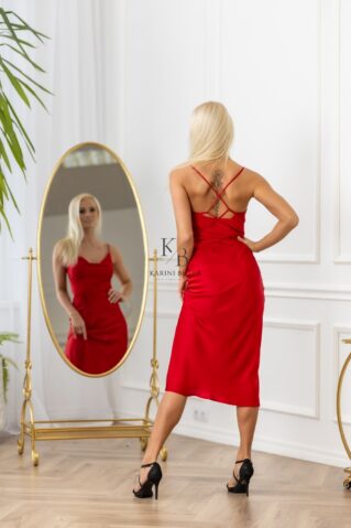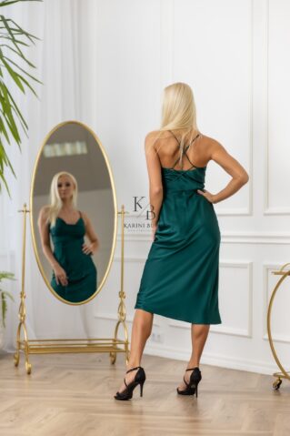 Elegantne ja ajatu peenikeste õlapaeltega midikleit on valmistatud luksuslikust satiinkangast, mis lisab igale kandmisele rafineeritud sära. Kleit langeb keha ümber pehmelt, rõhutades naiselikku siluetti, samas tagades maksimaalse mugavuse. Ideaalne nii pidulikeks sündmusteks kui ka romantilisteks õhtusöökideks. Kombineeri kõrgete kontsade ja elegantsete aksessuaaridega, et saavutada laitmatu välimus. Saadaval mitmes kaunis värvitoonis.