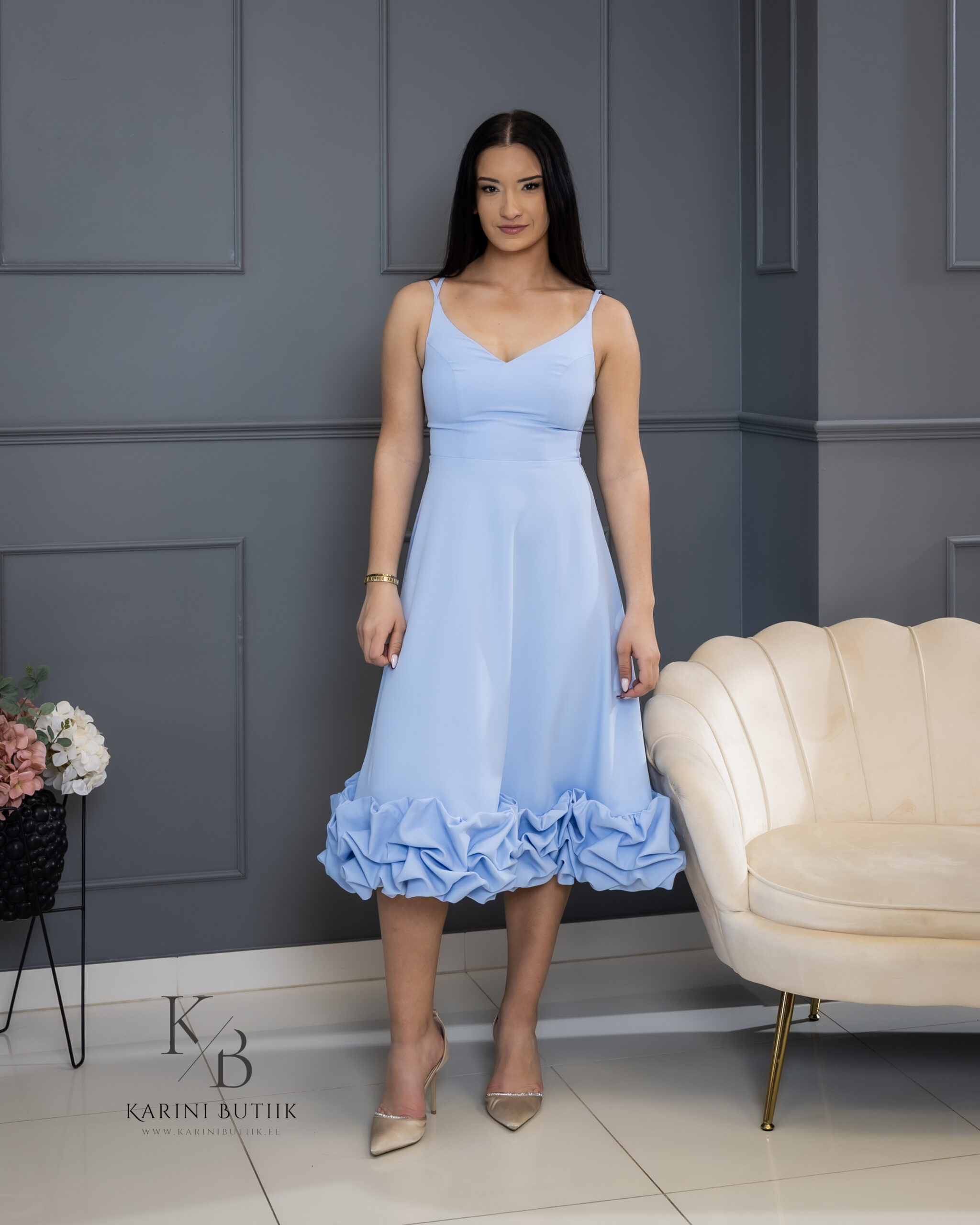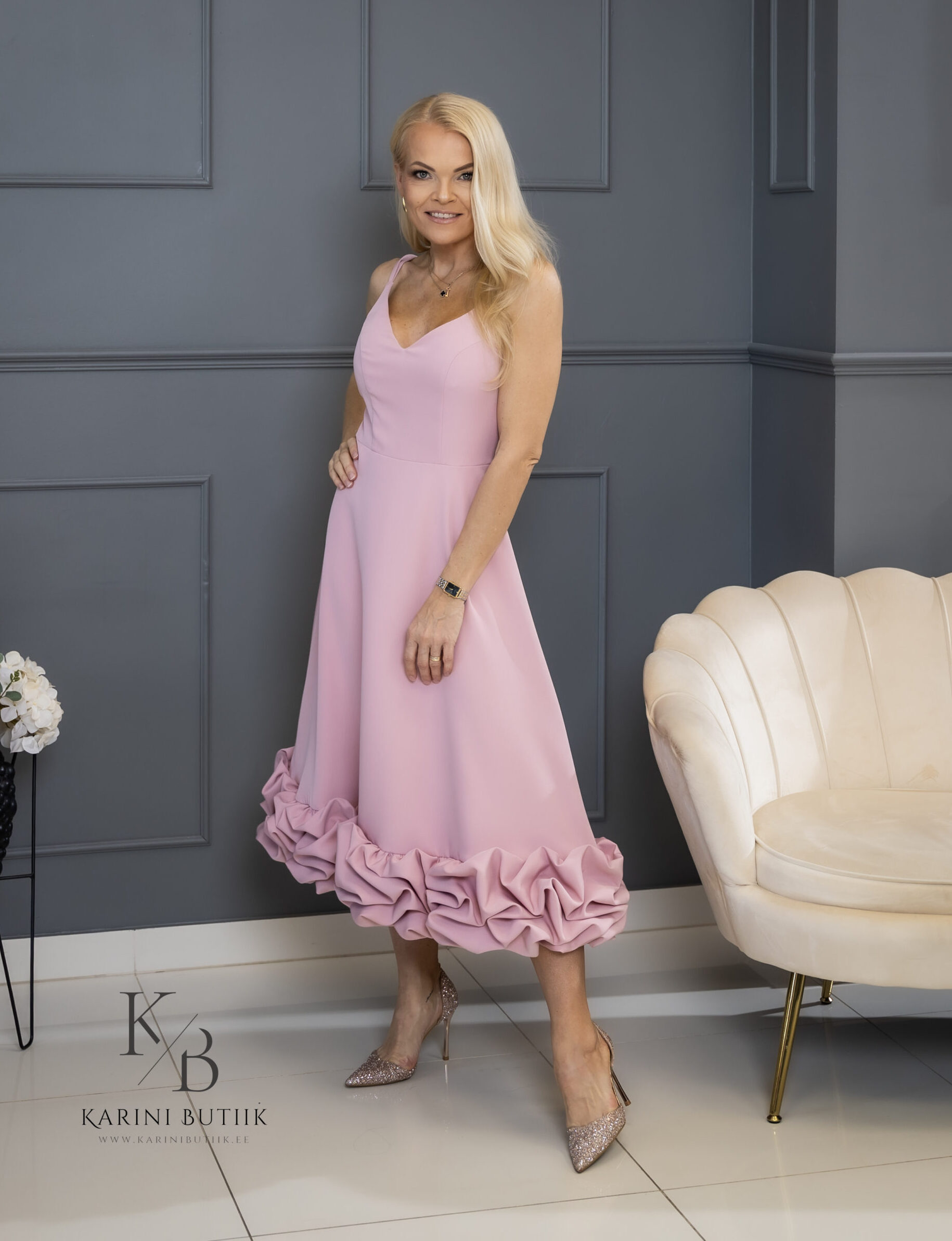 Volangäärisega midikleit on saadaval kahes imeilusas toonis — vanaroosa ja helesinine. Suurused XS ja S. Ideaalne valik, kui otsid kleiti, mis on korraga kvaliteetne, stiilne ja mugav.